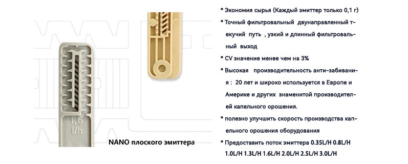 2. Эффективный эмиттер для трубы капельного орошения с встроенными эмиттерами. эффективной технологиям литьевого формования.